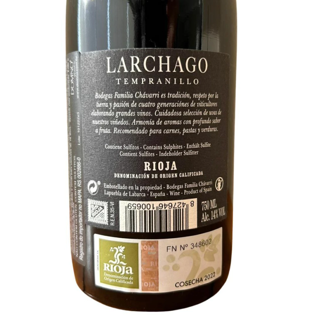 O Vinho Tinto Larchago Tempranillo Rioja DOC 2022 é uma verdadeira homenagem à tradição vinícola da renomada região de Rioja, na Espanha.